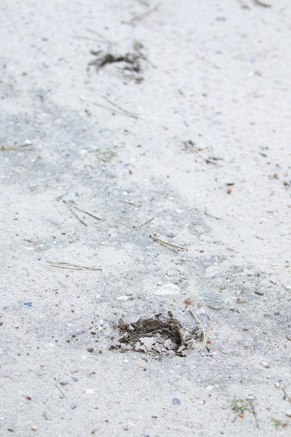 Vogels vliegen van boom naar boom en zingen het hoogste lied. En ik? Ik blijf speuren. Overal is bewijs te zien dat hier wilde dieren wonen. Er staan tientallen (als het er niet meer zijn) sporen van herten en zwijnen op het pad. Mijn spoorzoeken is nog niet zo goed, dat ik alle sporen van elkaar kan onderscheiden. Ik besluit hier om dat thuis toch weer op te pakken.